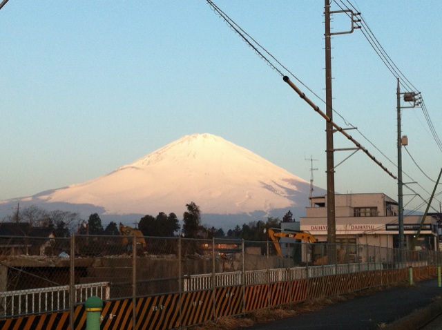 朝日に照らされる富士山に癒されました。